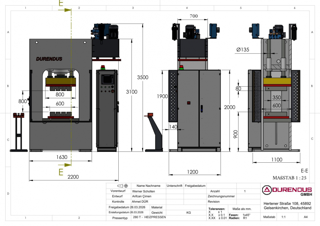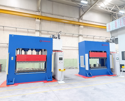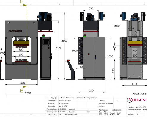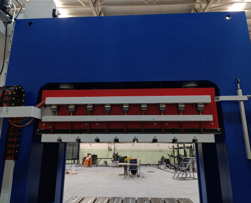 Diese Presse können wir Ihnen zu einem besonders günstigen Preis anbieten, da sich die Maschine bereits im Bau befindet und der ursprüngliche Kunde vom Auftrag über zwei baugleiche Maschinen zurückgetreten ist. Dadurch besteht die Möglichkeit, eine hochwertige servo-hydraulische Doppelständerpresse mit Heizplatten zu attraktiven Konditionen und vergleichsweise kurzfristig zu erwerben. Die gezeigten Fotos zeigen ähnliche, bereits gebaute Maschinen aus dem Werk und dienen als Beispielbilder.