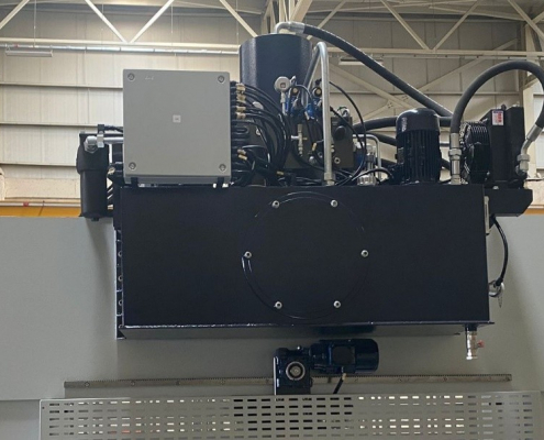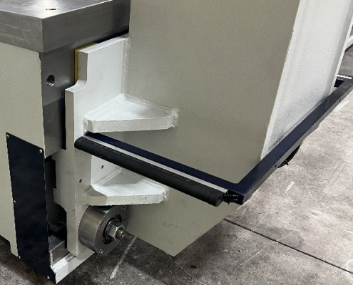 Die hier gezeigte Maschine wurde bereits in Kundenauftrag gebaut und ausgeliefert. Wir können Ihnen diese Maschine sehr kurzfristig neu fertigen – gern unter Berücksichtigung individueller Optionen. Es handelt sich um eine hydraulische Portalpresse mit 300 t Presskraft für Richt-, Montage- und Bearbeitungsprozesse an großformatigen Bauteilen.