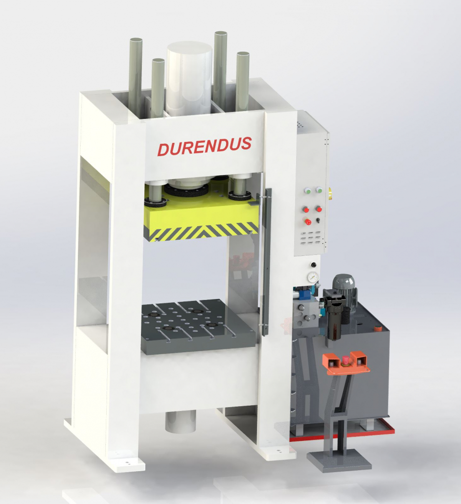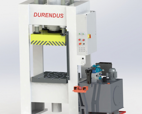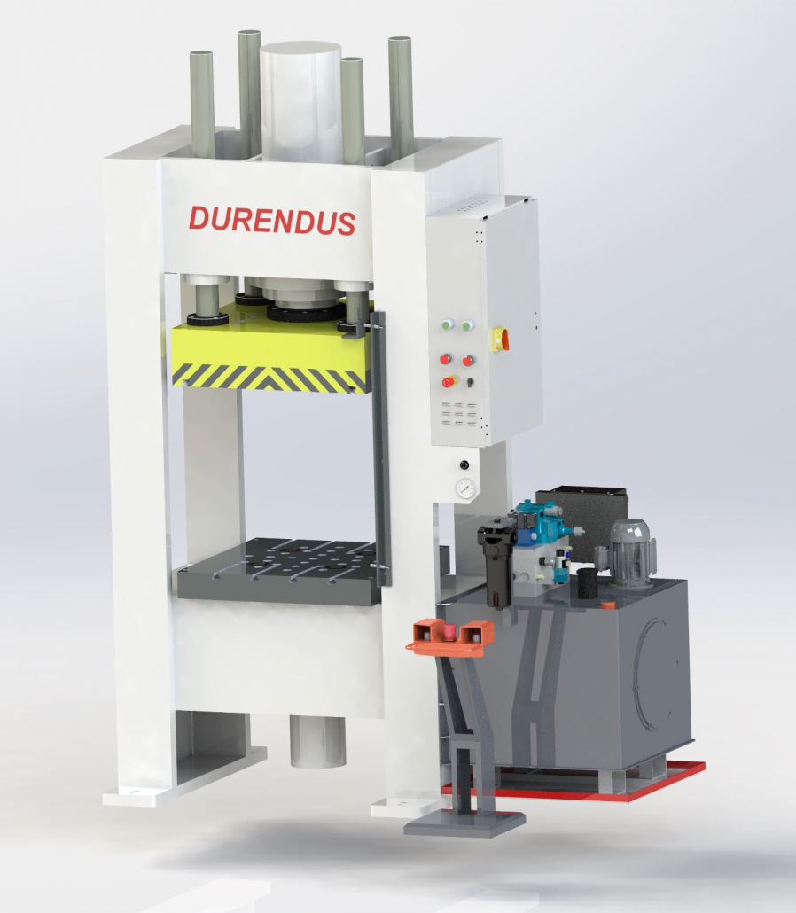 DURENDUS 200 T Tiefziehpresse – Doppelständerpresse – 900 × 900 mm Tisch, 80 T Ziehkissen